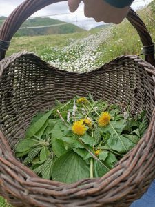 Esperienza di foraging e cucina romagnola integrale antinfiammatoria: raccolta di erbe spontanee, preparazione dei piatti e pranzo con quanto realizzato.